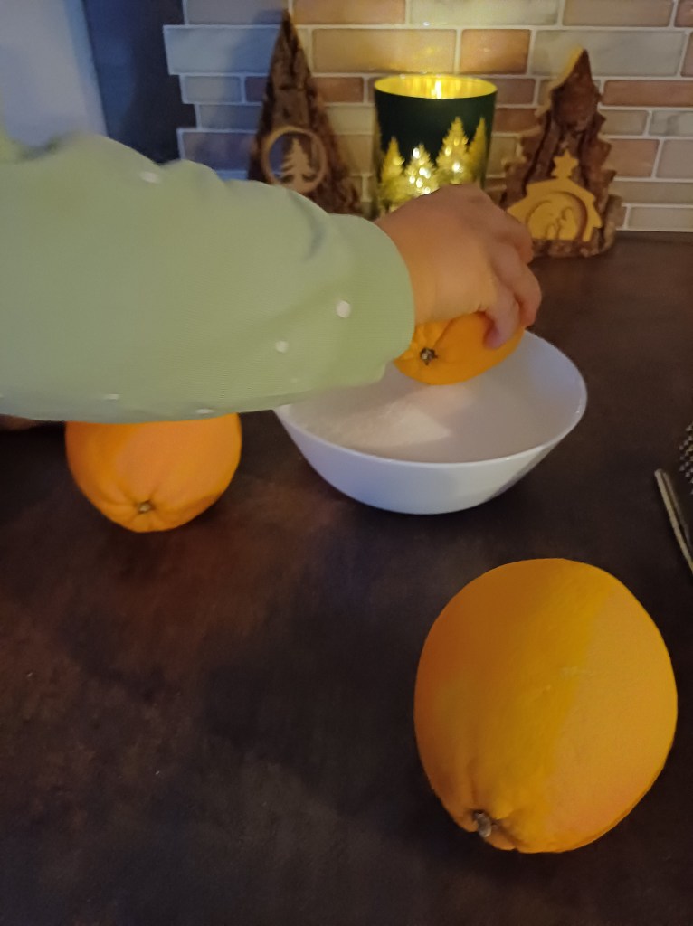 (Unbedingt Bio-Orangen, da ansonsten Spritzmittel eingesetzt wurden, die wir nicht verzehren dürfen!)